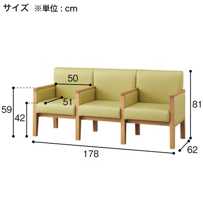 3人用ロビーソファ(WD-01 中肘あり LBR/IV)