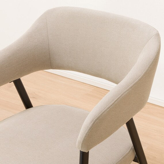 ゆったり座れる曲線型の肘掛一体型の背もたれが特徴のダイニングチェアです。斜めに寄りかかりながらゆったり座れます。また、肘に手を添えラクに立ち座りできます。チェアの生地には撥水加工を施し、汚れにくくお手入れが簡単です。