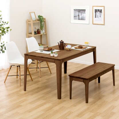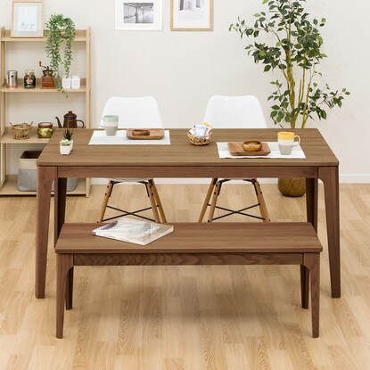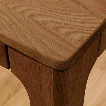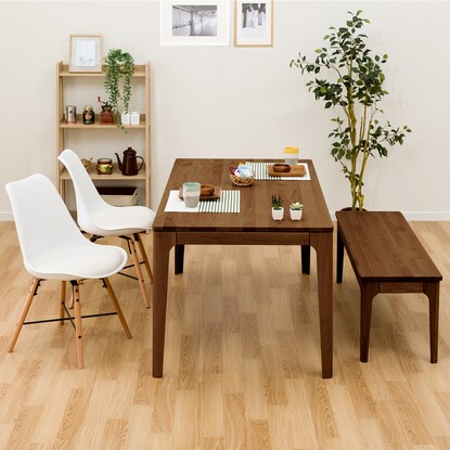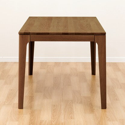 ぬくもりがある風合いのナラ材を使用。 シンプルなデザインでナチュラルな空間を演出してくれます。無垢材の特徴的な木目「虎斑 (とらふ)」など、天然木ならではの木目・節・色合いが一点一点違う表情を見せ、様々な模様で、ぬくもりのある雰囲気を引き立ててくれます。※画像は同シリーズのナチュラルを使用しています。【詳細サイズ(約)】 床から天板までの高さ:62cm 脚間:142cmこちらは一般家庭向けの商品です。 業務使用を前提とした構造にはなっておりません。 ※イメージ画像の場合、使用している小物等は演出品です。