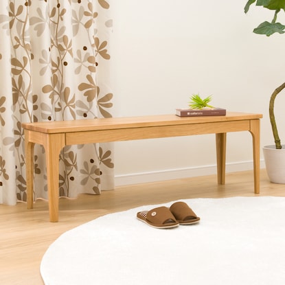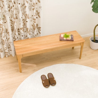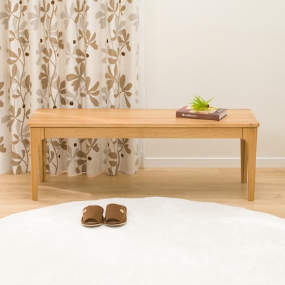 ぬくもりがある風合いのナラ材を使用。 シンプルなデザインでナチュラルな空間を演出してくれます。無垢材の特徴的な木目「虎斑 (とらふ)」など、天然木ならではの木目・節・色合いが一点一点違う表情を見せ、様々な模様で、ぬくもりのある雰囲気を引き立ててくれます。※画像は同シリーズのナチュラルを使用しています。【詳細サイズ(約)】 座面高:42cm 脚高:35cm 脚間:112cmこちらは一般家庭向けの商品です。 業務使用を前提とした構造にはなっておりません。