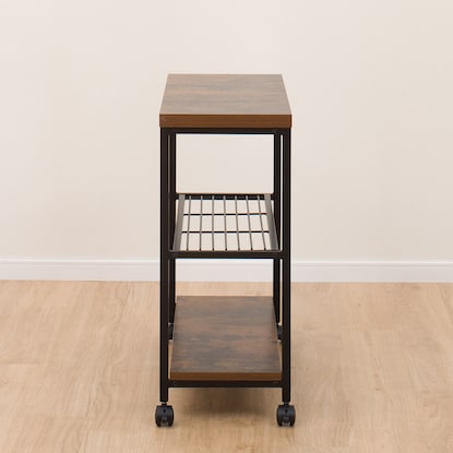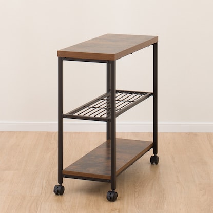 ダメージ風に仕上げた天板が味のある無骨さを演出。 ユーズド感がおしゃれなインダストリアルテイスト。 ワゴンを天板の横に置けば、テーブルを広く使うことができます。 同シリーズと組み合わせればでカフェのような空間を演出します。 移動に便利なキャスター付き。 同シリーズでコーディネートできます。