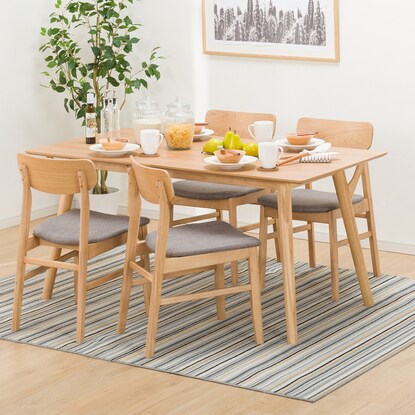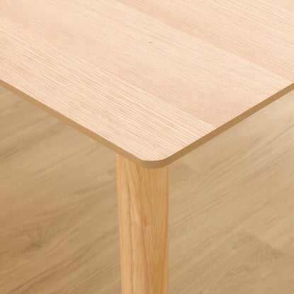 居心地のよさと気品を感じるテイスト「フィルン」シリーズのダイニングテーブルです。天然木の美しく豊かな木目が楽しめる天板。ライトブラウンはオーク突板、ミドルブラウンはウォールナット突板を使用しています。豊かな木質感とその表情を感じてもらうため、板や脚のデザインと素材にこだわりました。ミドルブラウンは「落ち着いた中にあるかわいらしさ」、ライトブラウンは「穏やかでやさしい暮らし」を表現しており、お好みのテイストを見つけられます。 こちらは一般家庭向けの商品です。業務使用を前提とした構造にはなっておりません。【詳細サイズ】 ■床から天板下までの高さ:68cm ■脚間サイズ:幅130×奥行63cm※イメージ画像の場合、使用している小物等は演出品です。
