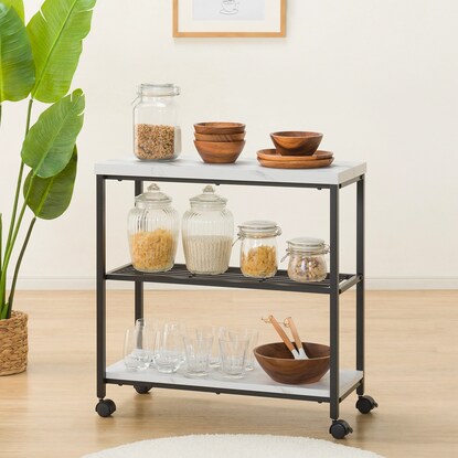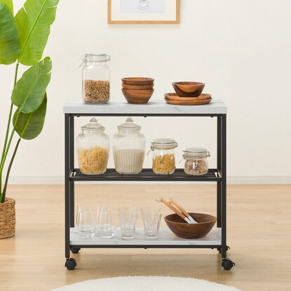 ワゴンを天板の横に置けば、テーブルを広く使うことができます。
