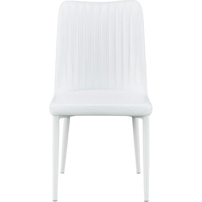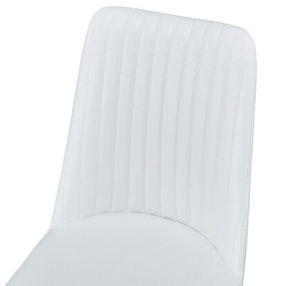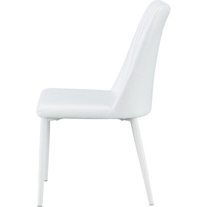 シンプルなフォルムに縦のキルティングデザインが特徴的なダイニングチェアです。 食べこぼしなどの汚れもサッと水拭きができるので、お手入れが簡単です。こちらは一般家庭向けの商品です。 業務使用を前提とした構造にはなっておりません。※イメージ画像の場合、使用している小物等は演出品です。