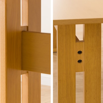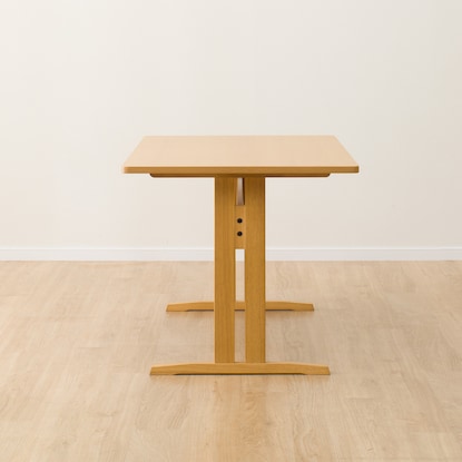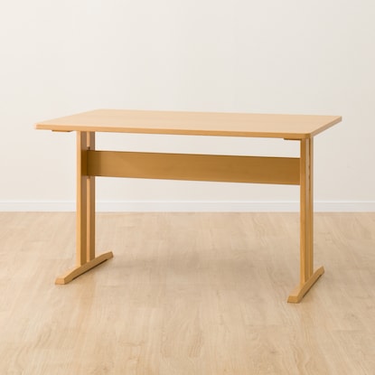 ※こちらの商品は東日本エリア限定商品です。天板の厚さは2.4cmでボリュームが感じられる仕様です。 角は安心感のある丸みがあり傷のつきにくいUV仕上げです。 脚元はT字タイプなので四隅にスペースができ、回転イスがぶつかりにくく、ベンチソファも設置しやすいデザインです。 他の家具とコーディネートしやすいベーシックなカラー。 手入れのしやすいPVC仕様でいつでも清潔にお使いいただけます。※こちらは幅120cmタイプです。※こちらの商品は東日本エリア限定商品です。