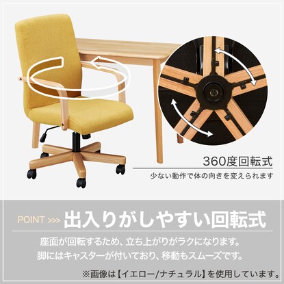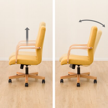 スターベースに木製(ラバーウッド無垢材)を使用し、ぬくもりを感じるデザインのキャスターチェアです。