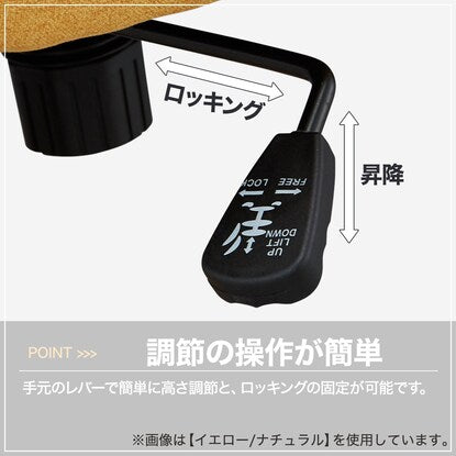 手元のレバーで簡単に高さ調節と、ロッキングの固定が可能です。