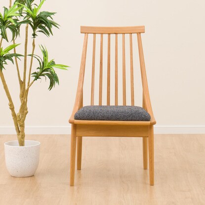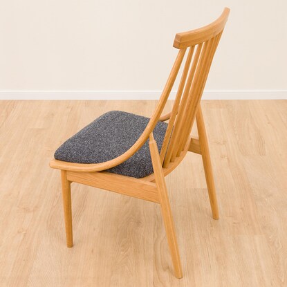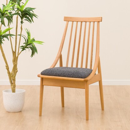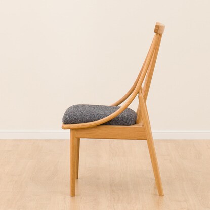 サイドフレームの曲げ木が特徴的。 シンプルながら存在感のあるデザインです。 オーク材を使用した自然美豊かな表情とデザインを楽しめるチェア。 堅く、重厚感がありながら加工がしやすい木材です。 古くより家具の素材として愛用されています。こちらは一般家庭向けの商品です。 業務使用を前提とした構造にはなっておりません。※イメージ画像の場合、使用している小物等は演出品です。