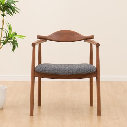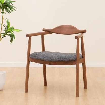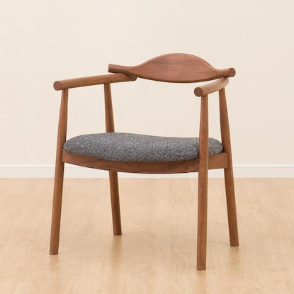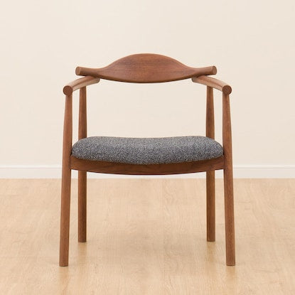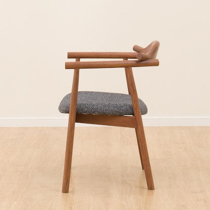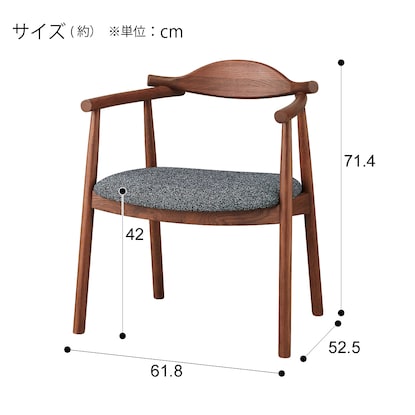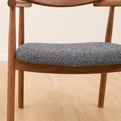 オーク材を使用した自然美のある豊かな表情を楽しめる【ログ】シリーズのダイニングチェアです。 丸いフレームが特徴的な立ち座りしやすい肘付きタイプです。こちらは一般家庭向けの商品です。 業務使用を前提とした構造にはなっておりません。※イメージ画像の場合、使用している小物等は演出品です。