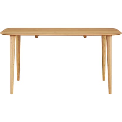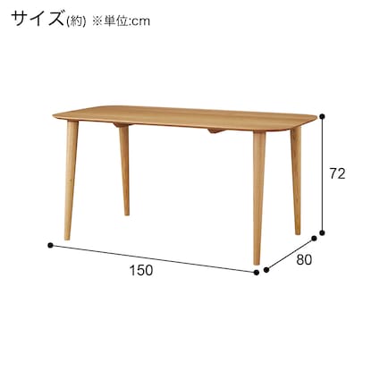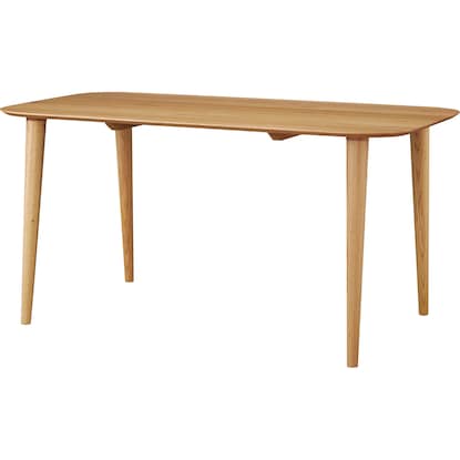 ぬくもりがある風合いの天然木を使用し、ナチュラルな空間を演出するダイニングテーブル。 レッドオーク材の天板は、角が曲線で優しい雰囲気。 天板下に幕板がないすっきりとしたデザインです。 ※天然木の為、木目・色合い・節目など、自然が生み出す表情は1点1点異なります。同シリーズのイスと組み合わせてコーディネートできます。こちらは一般家庭向けの商品です。 業務使用を前提とした構造にはなっておりません。※イメージ画像の場合、使用している小物等は演出品です。