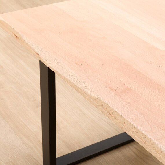 ビーチ無垢材をふんだんに使用した飽きのこないシンプルモダンデザインのダイニングテーブルです。天然木ならではの滑らかな造り、肌ざわりが楽しめます。硬さと柔軟性を持ち合わせたアイテムです。