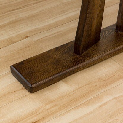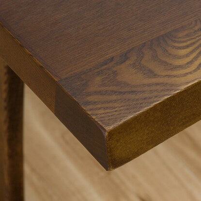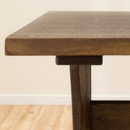 脚元はT字タイプなので四隅にスペースができ、回転イスがぶつかりにくく、ベンチソファも設置しやすいデザインです。また、大き目のサイズの天板で、広く使えます。