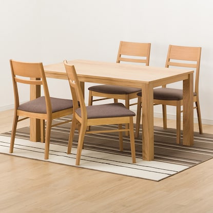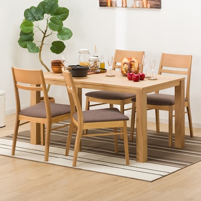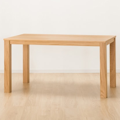 シンプルなデザインと天然木の美しさがお部屋引き立てるダイニングテーブル。 天板は木目が美しい天然木突板を使用しています。幅135cmタイプです。 こちらは一般家庭向けの商品です。 業務使用を前提とした構造にはなっておりません。※イメージ画像の場合、使用している小物等は演出品です。
