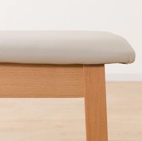 木目が引き立つ座りやすさ抜群のベンチです。ダイニング用のほかにも寝室や玄関に置いても便利です。フレームは天然木、座面の張り地にはお手入れが楽PVCを座面に使用し、食べこぼしを水拭きでお手入れ可能です。シンプルでナチュラルな組み合わせが北欧テイストの雰囲気が特徴的です。