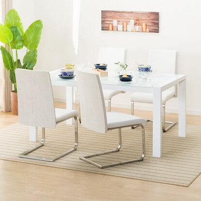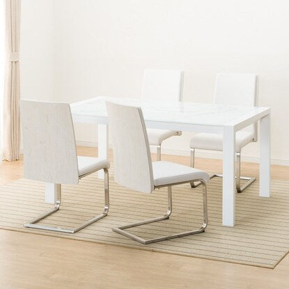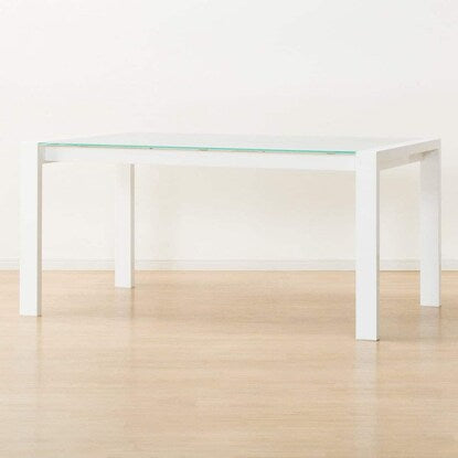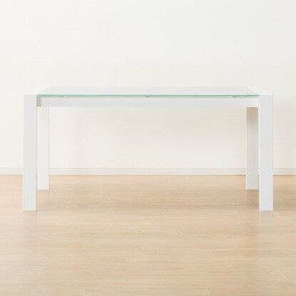 ガラス天板のシャープなデザインのダイニングテーブル。