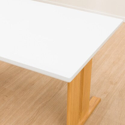 T型脚なら、回転イスがぶつかりにくく、ベンチソファも設置しやすいデザインです。