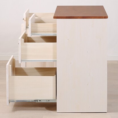 引出しは全段レール付きでスムーズに開閉できるようになっています。