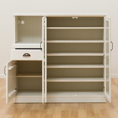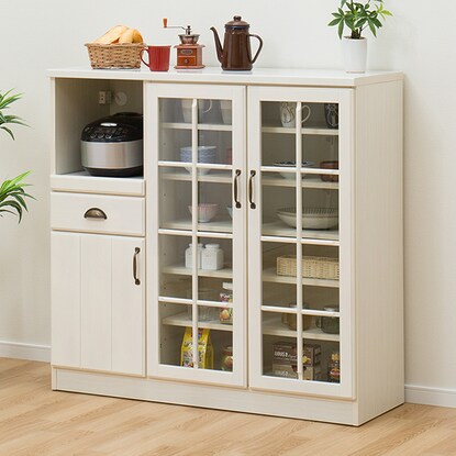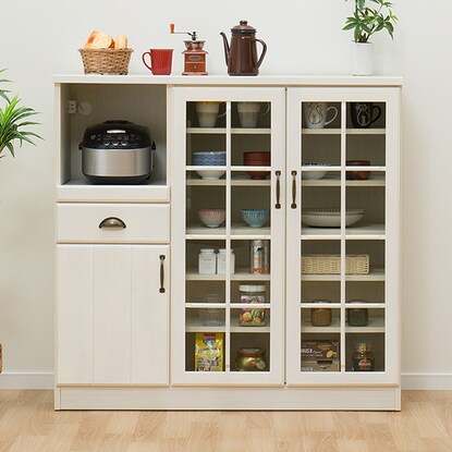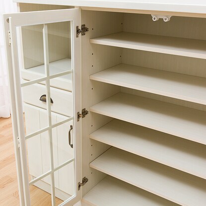 落ち着いた中にも優しい存在感のあるフレンチカントリーテイストの食器棚。