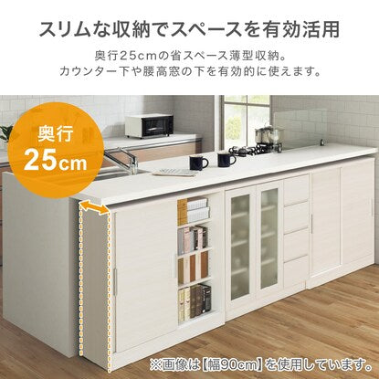 奥行25cmの省スペース薄型収納。カウンター下や腰高窓の下を有効的に使えます。