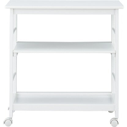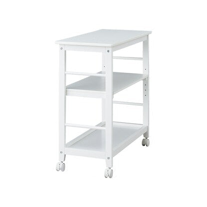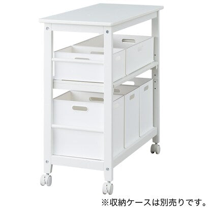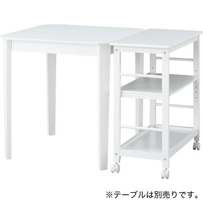 細かなアイテムを収納し、整理整頓に役立つキッチンワゴンです。 ワゴンを天板の横に置けば、テーブルを広く使うことができます。 移動が簡単にできるキャスター脚は、ストッパー付きで安心。※イメージ画像の場合、使用している小物等は演出品です。