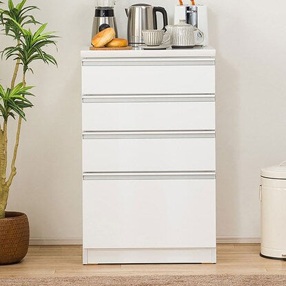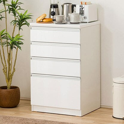 取っ手がスタイリッシュな印象の引出し。たっぷりの収納力で、キッチン周りをスッキリ整理。