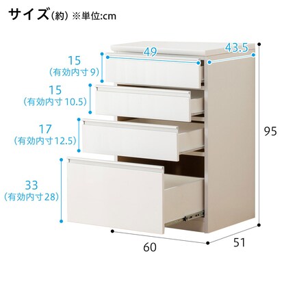 最下段:幅49×奥行43.5×高さ33(有効内寸28)cm