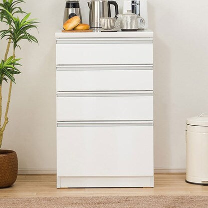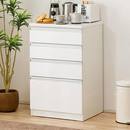 取っ手がスタイリッシュな印象の引出し。たっぷりの収納力で、キッチン周りをスッキリ整理。