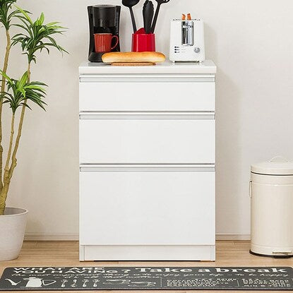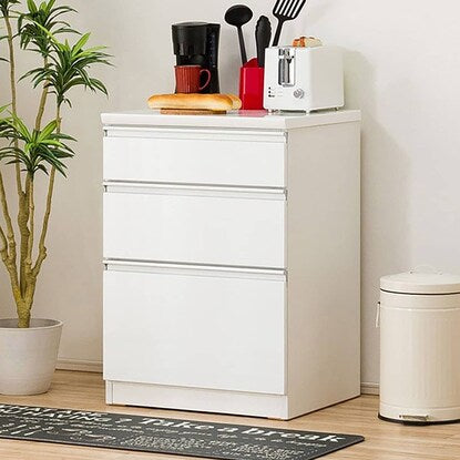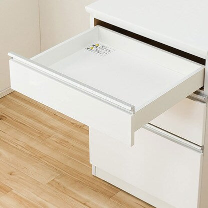 取っ手がスタイリッシュな印象の引出し。たっぷりの収納力で、キッチン周りをスッキリ整理。