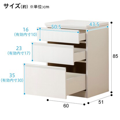 最下段:幅50.5×奥行43.5×高さ35(有効内寸30)cm