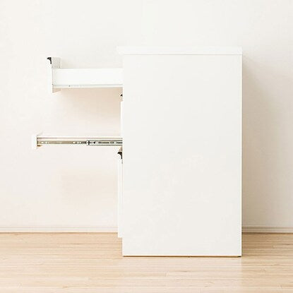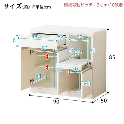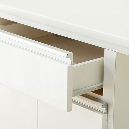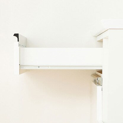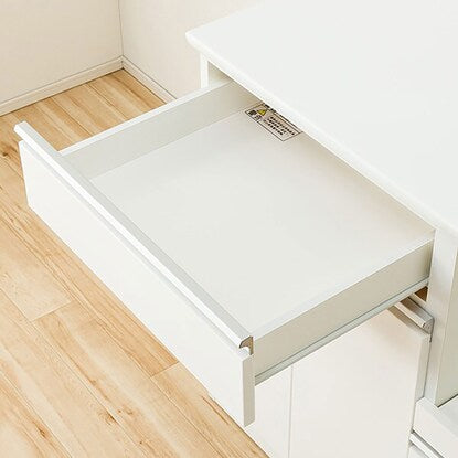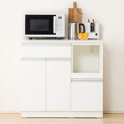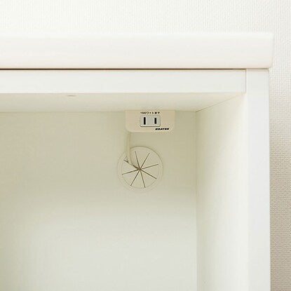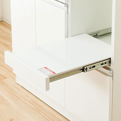 スライドテーブルは、炊飯ジャーなどフタ付き製品や、蒸気が出るキッチン家電を置くのに最適です。配線穴付きなので、コードを後ろに通すことができます。