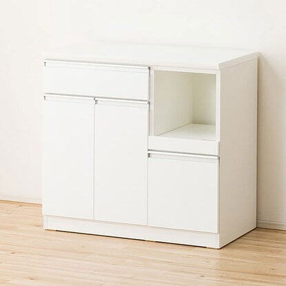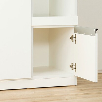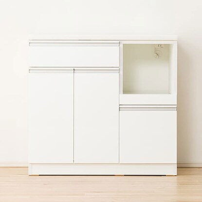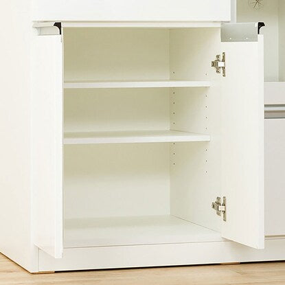 高さのある家電などを収納するのに便利な、開き扉仕様のキッチンカウンターです。