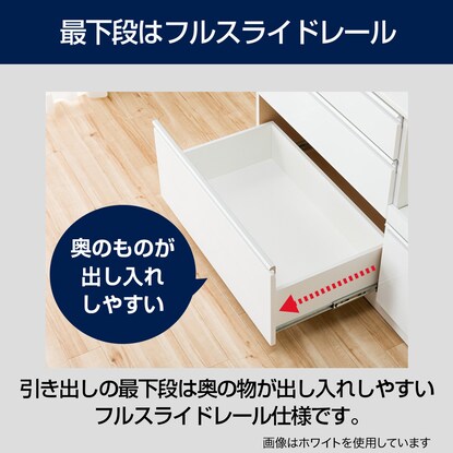 引出しの最下段は奥の物が出し入れしやすいフルスライドレール仕様です。
