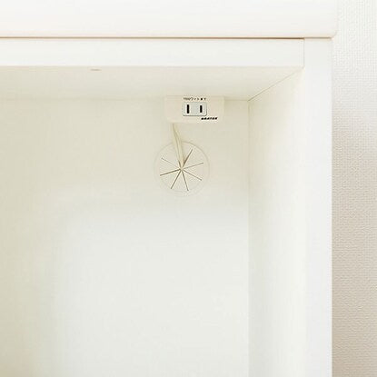 スライドテーブルは、炊飯ジャーなどフタ付き製品や、蒸気が出るキッチン家電を置くのに最適です。配線穴付きなので、コードを後ろに通すことができます。