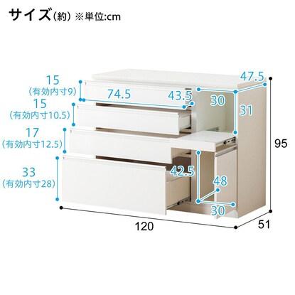 2段目:幅74.5cm×奥行43.5×高さ15(有効内寸10.5)cm