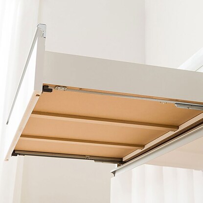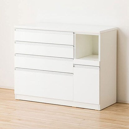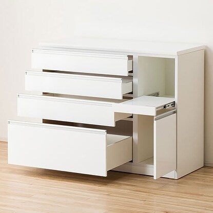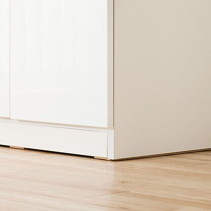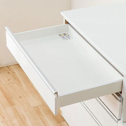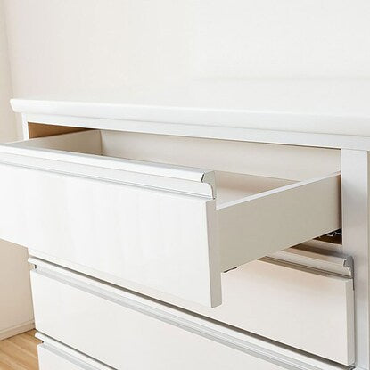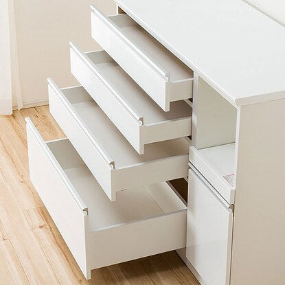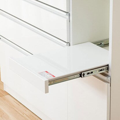 引出しに世界的メーカーヘティヒ社と共同開発したレールを使用しています。全段奥の物が出し入れしやすいフルオープンタイプ、また耐久性の高い底受け構造レールが引出しの荷重を分散して受け止めます。引出しの1・2段目は、押すだけでゆっくり閉まるソフトクローズ仕様の高機能レールです。