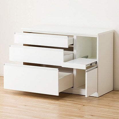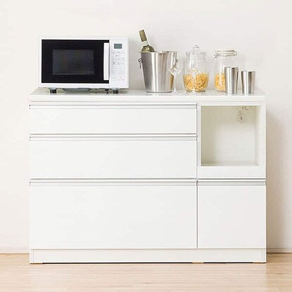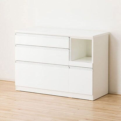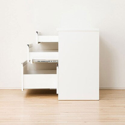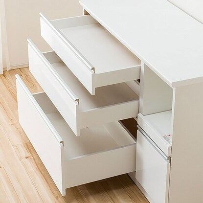 引出しに、世界的メーカーヘティヒ社と共同開発したレールを使用した、キッチンカウンターです。スライドテーブルは、炊飯ジャーなどフタ付き製品や、蒸気が出るキッチン家電を置くのに最適です。配線穴付きなので、コードを後ろに通すことができます。引出しに世界的メーカーヘティヒ社と共同開発したレールを使用しています。全段奥の物が出し入れしやすいフルオープンタイプ、また耐久性の高い底受け構造レールが引出しの荷重を分散して受け止めます。引出しの1段目は、押すだけでゆっくり閉まるソフトクローズ仕様の高機能レールです。【詳細サイズ(約)】■下台 引出し内寸 1段目:幅76cm×奥行43.5×高さ16(有効内寸10)cm 2段目:幅76cm×奥行43.5×高さ23cm(有効内寸17)cm 最下段:幅76cm×奥行43.5×高さ35cm(有効内寸30)cm オープンスペース内寸:幅30×奥行47.5×高さ31cm 1500W コンセント1口付き 扉内内寸(右側):幅30×奥行48×高さ32.5cm