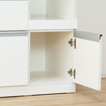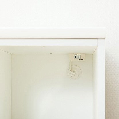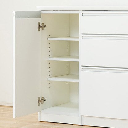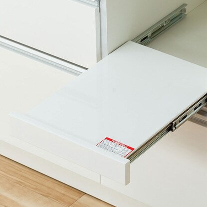 スライドテーブルは、炊飯ジャーなどフタ付き製品や、蒸気が出るキッチン家電を置くのに最適です。配線穴付きなので、コードを後ろに通すことができます。