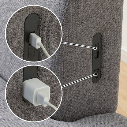 ソファの背もたれ側面には、コンセントとUSBが1口ずつあり、スマホの充電やパソコン作業、ゲームの電源として使用できます。