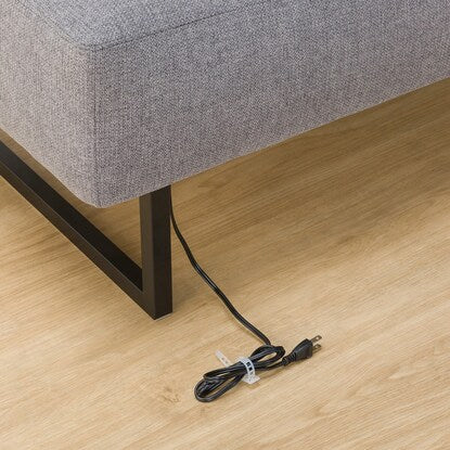 電源コードの長さは約1メートルあり、ソファ座面裏側に配線がございます。