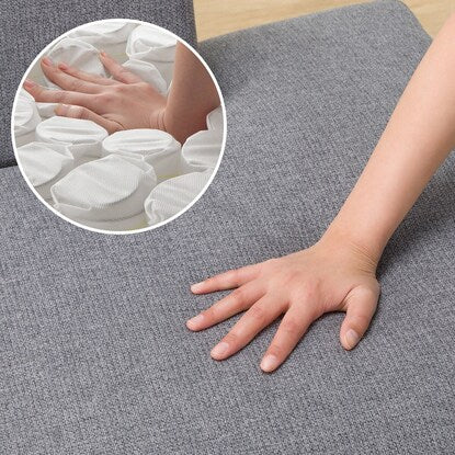 座面はポケットコイルを使用したフィット感のある座り心地。一つ一つ独立したコイルが点で体を支え体圧を分散。