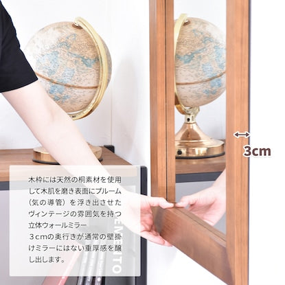 天然木アンティーク調 ウォールミラー フラットフレーム