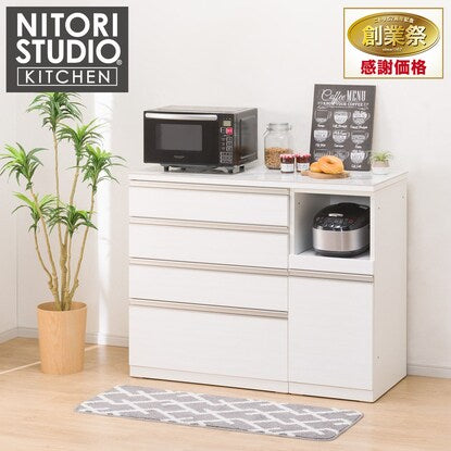 組み合わせ内容(120cm幅カウンター天板×1、80cm幅下台×1、40cm幅下台×1) ※単品商品コード(4709761、4709153、4709142)天板にはキズ・熱・汚れに強いセラミック素材を使用しています。 引き出しタイプは勢いよく閉めても直前に減速し、不快な音を出さずにゆっくりピッタリ閉まるソフトクローズ引出し、フルオープンで出し入れ簡単。 引き出しの側面はレール金具が見えないスッキリとしたデザイン。 力を分散して受け止める、耐久性にも優れたヘティヒ社製底受けレールを使用しています。 スライドテーブル付きタイプは、炊飯器やポットなど、蒸気の出る調理家電を配置するのに最適。 ※1500Wコンセント1口付き。 引出し部分はソフトクローズ引出し、フルオープンで出し入れ簡単です。【詳細サイズ(約)】■引出しタイプ 引出し内寸 最上段:幅71×奥行43.5×高さ11cm 2・3段目:幅71×奥行43.5×高さ13.5cm 最下段:幅71×奥行43.5×高さ24.5cm■スライドテーブルタイプ オープンスペース内寸:幅34×奥行47×高さ28cm スライドテーブル付き 引出し内寸:幅31.5×奥行43.5×高さ44cm 1500Wコンセント1口 【ご注意】組み合わせ商品のため、単品での販売は行っておりません、予めご了承くださいませ。