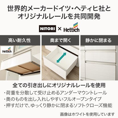 力を分散して受け止める、耐久性にも優れたヘティヒ社製底受けレールを使用しています。