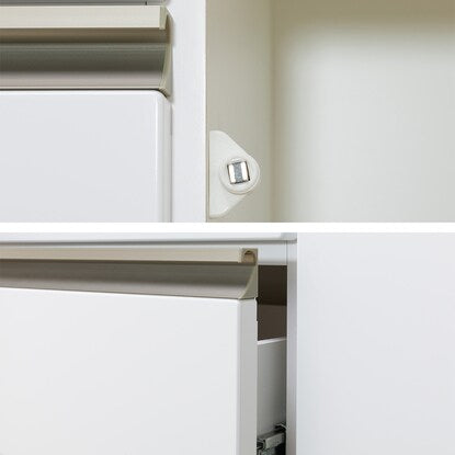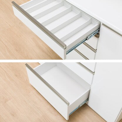 また、引出しの最上段には仕切り板が付いており、カトラリーなど分類別に見やすく収納可能。
