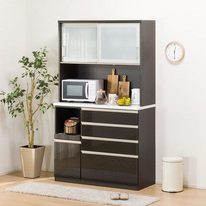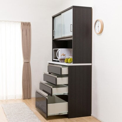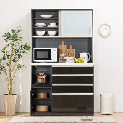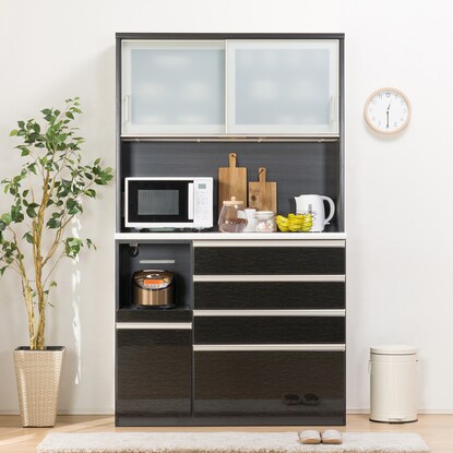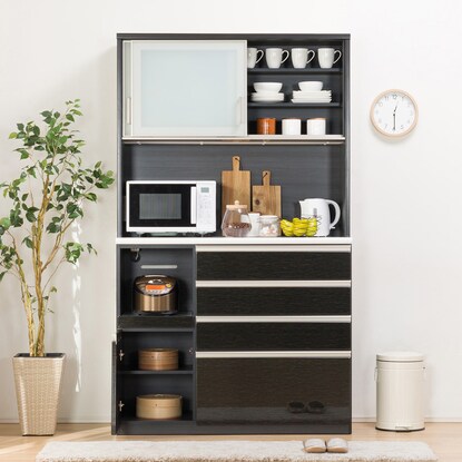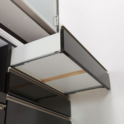 上部収納スペースは横スライド式なので、万が一の振動による食器の飛び出しを軽減してくれます。