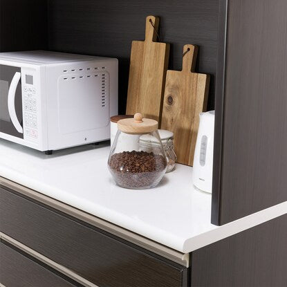 家事のしやすいハイカウンターは大型レンジの設置ができる広々とした奥行き。