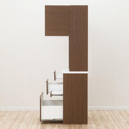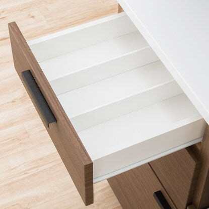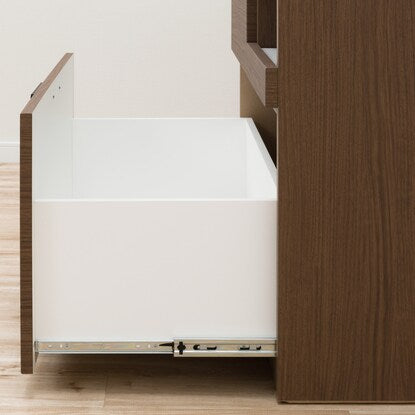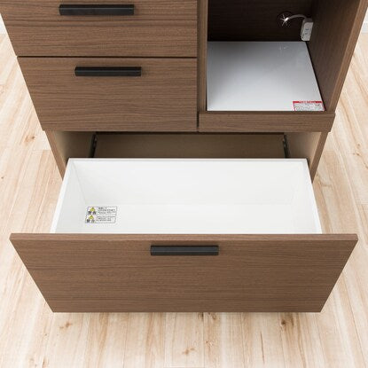 下台は、引出し収納タイプ。最下段はフルスライドレール付きで出し入れスムーズ。