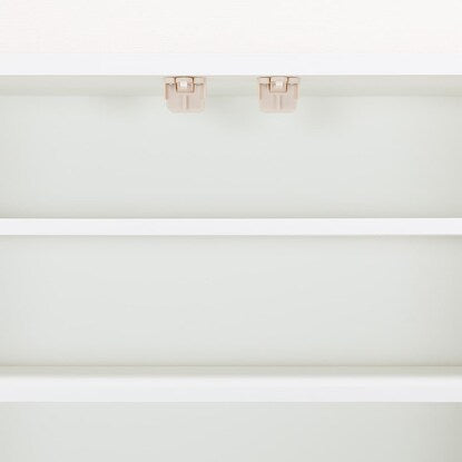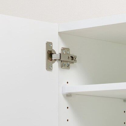 棚板はストッパーで固定され、揺れても外れにくい構造です。
