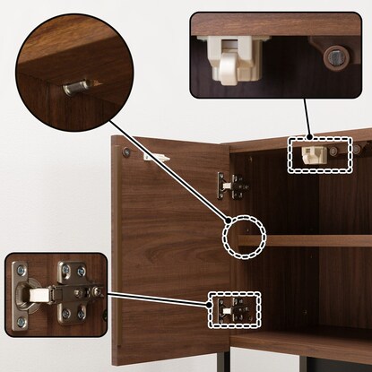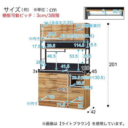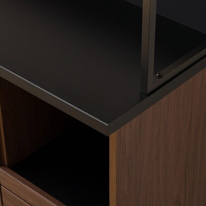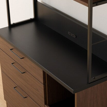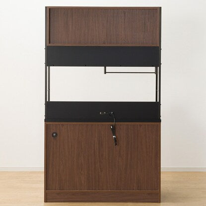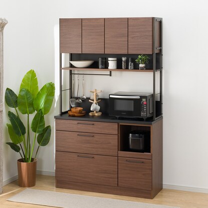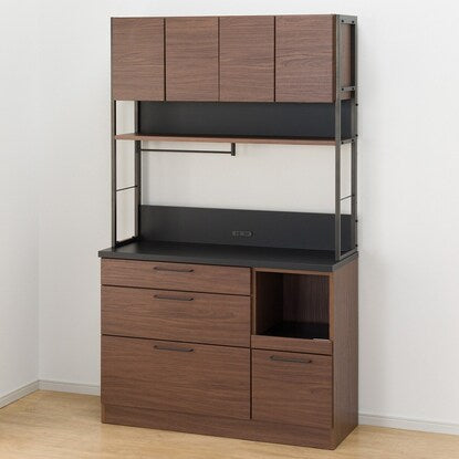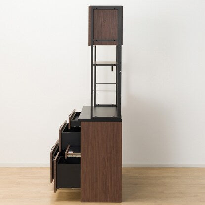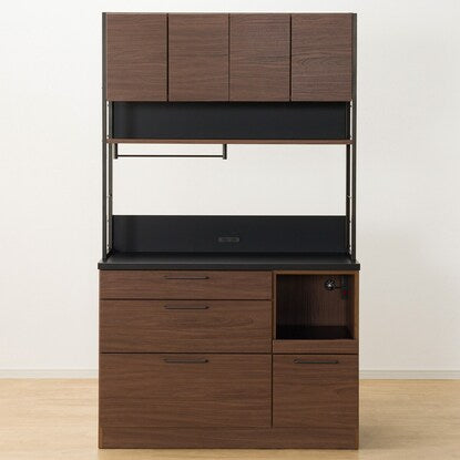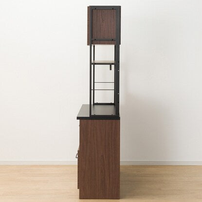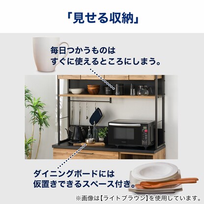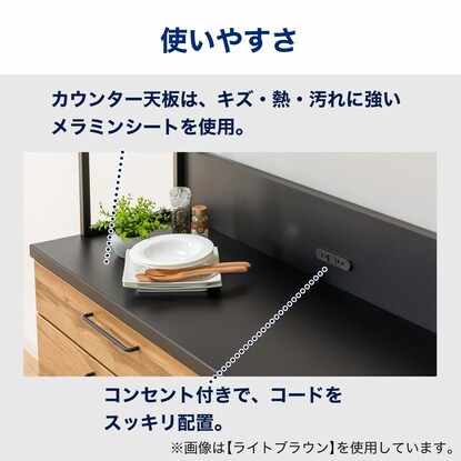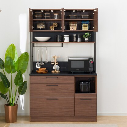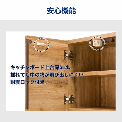 中身を隠してすっきり収納できる板扉仕様で、食器などをしまう時や出すときに、仮置きできるスペース付き。