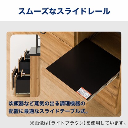 炊飯器など蒸気の出る調理機器の配置に最適なスライドテーブル式。